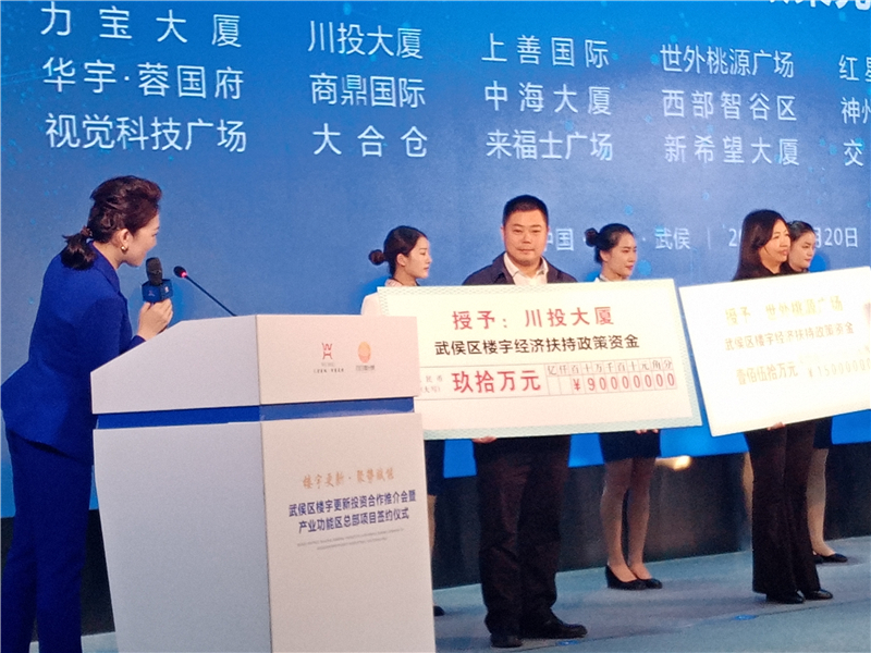 2019年是成都市“國際化營商環(huán)境建設年”,武侯區(qū)繼2019年上半年“優(yōu)商育商親商標桿樓宇”建設后再次推出營商環(huán)境建設深化行動,進一步保障良好的營商環(huán)境?;顒蝇F(xiàn)場,舉行了樓宇政策兌現(xiàn)儀式,兌現(xiàn)2019年樓宇經(jīng)濟政策各類獎勵扶持資金1030萬元,轄區(qū)17家樓宇單位受益。其中,川投大廈獲得了“武侯區(qū)樓宇經(jīng)濟扶持政策資金”90萬元,房地產(chǎn)公司總經(jīng)理張碧波代表川投大廈上臺領獎。