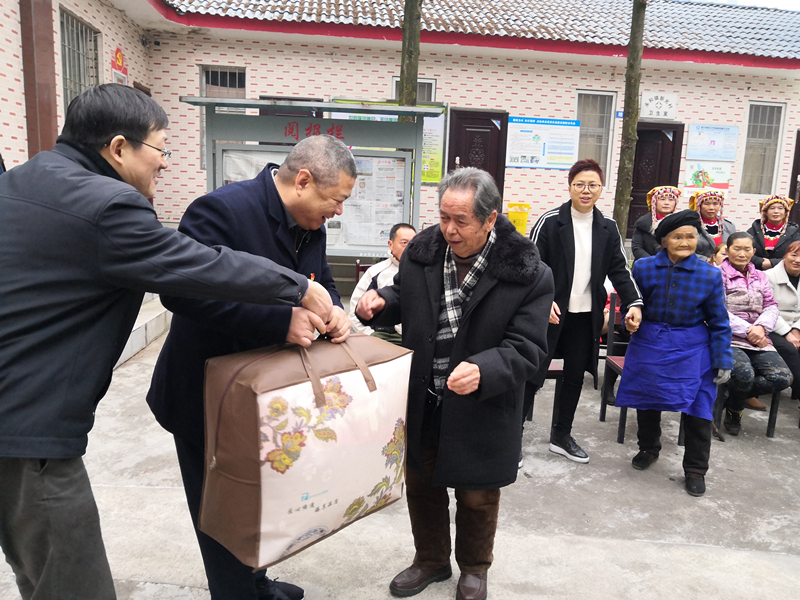 12月13日,川投能源黨委書記、總經(jīng)理楊洪,黨委委員、副總經(jīng)理楊平一行赴金口河區(qū)永和鎮(zhèn)新光村開展扶貧慰問工作,為結(jié)對共建的村支部送去十九屆四中全會書籍,并觀看了當(dāng)?shù)匚幕鲐毘晒?,慰問扶貧駐村干部,為當(dāng)?shù)厝罕娝腿ミ^冬物品,看望了當(dāng)?shù)乩щy群眾。村委會代表全體村民向川投能源贈送“傾情幫扶解貧困,惠民之舉暖人心”錦旗,為公司多年來取得的扶貧工作和扶貧成果感恩點贊。