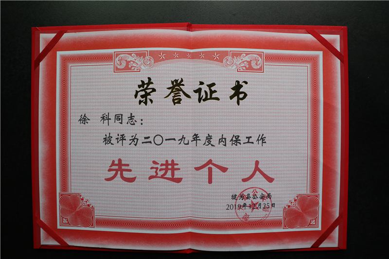 12月24日,樂(lè)山市犍為縣公安局對(duì)2019年度內(nèi)部治安保衛(wèi)工作先進(jìn)集體和個(gè)人進(jìn)行表彰,嘉陽(yáng)集團(tuán)榜上有名,被授予2019年度內(nèi)部治安保衛(wèi)工作先進(jìn)集體榮譽(yù)稱(chēng)號(hào),保衛(wèi)部徐科同志被評(píng)為2019年度內(nèi)部治安保衛(wèi)工作先進(jìn)個(gè)人。