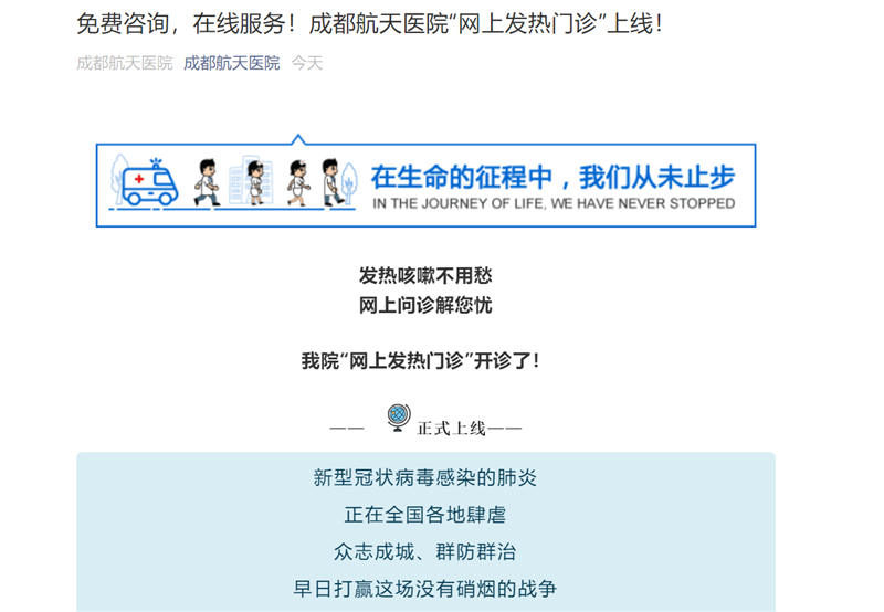 截至目前,開發(fā)的網(wǎng)上發(fā)熱門診已在四川省護理職業(yè)學院附屬醫(yī)院、成都市第三人民醫(yī)院、成都航天醫(yī)院等多家醫(yī)院推廣應用,另有多家醫(yī)院正積極籌備開通。