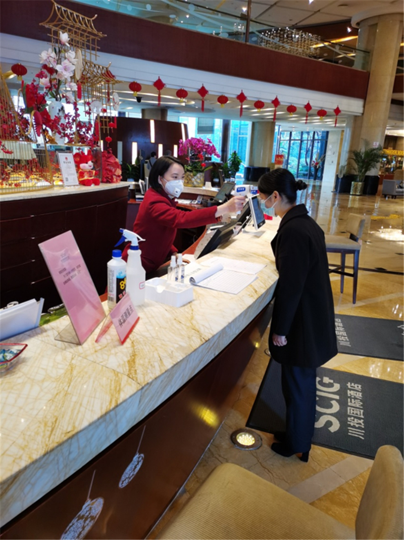 在四川還未出現(xiàn)首新型冠狀病毒感染時(shí),前廳部就召開了部門緊急會(huì)議預(yù)警防控,重點(diǎn)防控,提前準(zhǔn)備了重要的防疫物資,口罩、消毒酒精、板藍(lán)根沖劑及應(yīng)急醫(yī)療箱,每天免費(fèi)為員工及客戶提供口罩、消毒液等防護(hù)物資。前廳部要求部門提高警惕,嚴(yán)控出入,準(zhǔn)確檢測,在東大門設(shè)立體溫測量點(diǎn),部門員工上崗前必須進(jìn)行體溫測量,如實(shí)登記《前廳部在崗員工體溫監(jiān)測表》。前廳部要求既確保證服務(wù)質(zhì)量,又廣泛宣傳疫情,對所有的進(jìn)店客人,都由禮賓或者前臺(tái)員工對其進(jìn)行體溫測量與疫情防控的信息詢問。在疫情逐漸嚴(yán)峻的情況下,前廳部門員工們張貼告示,不厭其煩地對來往客人進(jìn)行溫馨提示,始終把最可愛的微笑留客人,把最好的防護(hù)物資優(yōu)先提供客人,口罩始終先發(fā)厚款,再發(fā)薄款,消毒水始終備足。 疫情牽動(dòng)人心,但前廳部那群可愛的人始終堅(jiān)守崗位,認(rèn)真熱忱,為疫情陰霾中的人們帶來了動(dòng)人的暖意。