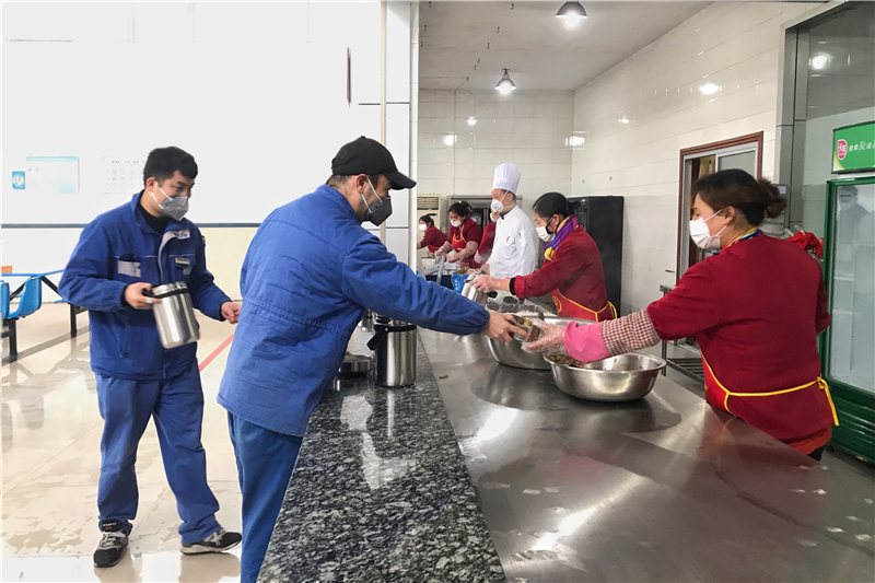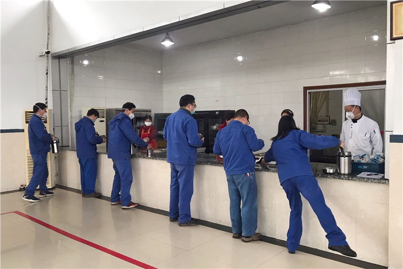 在食堂就餐時,公司給每位員工準(zhǔn)備了飯盒,并且對各部門就餐時間進(jìn)行了分段安排、錯時用餐,同時要求員工打餐帶回寢室,分散用餐,杜絕了人員聚集。