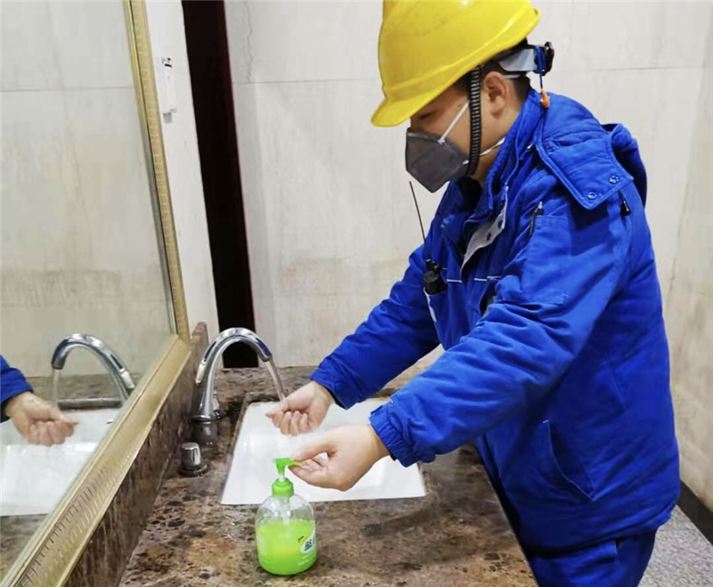 在值班時,大家都自覺用公司配備的洗手液勤洗手。
