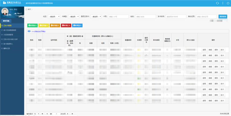 而支撐這“五色卡”的,則是川投信產(chǎn)所屬智勝集成公司利用互聯(lián)網(wǎng)+、大數(shù)據(jù)等信息技術(shù),研發(fā)上線的“成華區(qū)疫情防控五色卡信息管理系統(tǒng)”。截至目前,該系統(tǒng)已在成華區(qū)全區(qū)11個街道、110個社區(qū)、全區(qū)130多萬居民中推廣使用。
