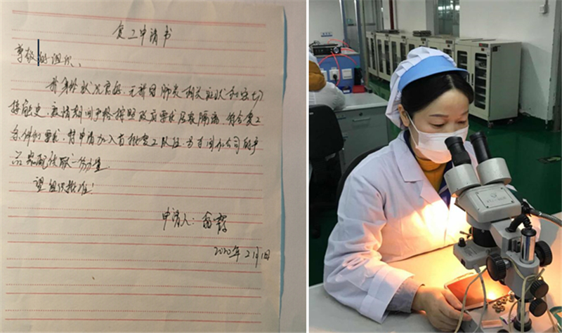 2月1日大年初八,電位器測量員翁霞親手將自己的復工申請交到了車間主任的手中。