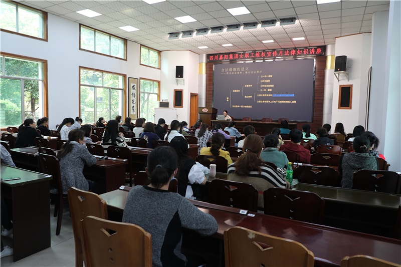 3月24日下午,由嘉陽(yáng)集團(tuán)公司工會(huì)、女職工委員會(huì)組織開(kāi)展的“女職工維權(quán)宣傳月法律知識(shí)講座”在集團(tuán)公司辦公樓底樓會(huì)議室舉行,來(lái)自各單位的女工代表50余人聆聽(tīng)了講座。