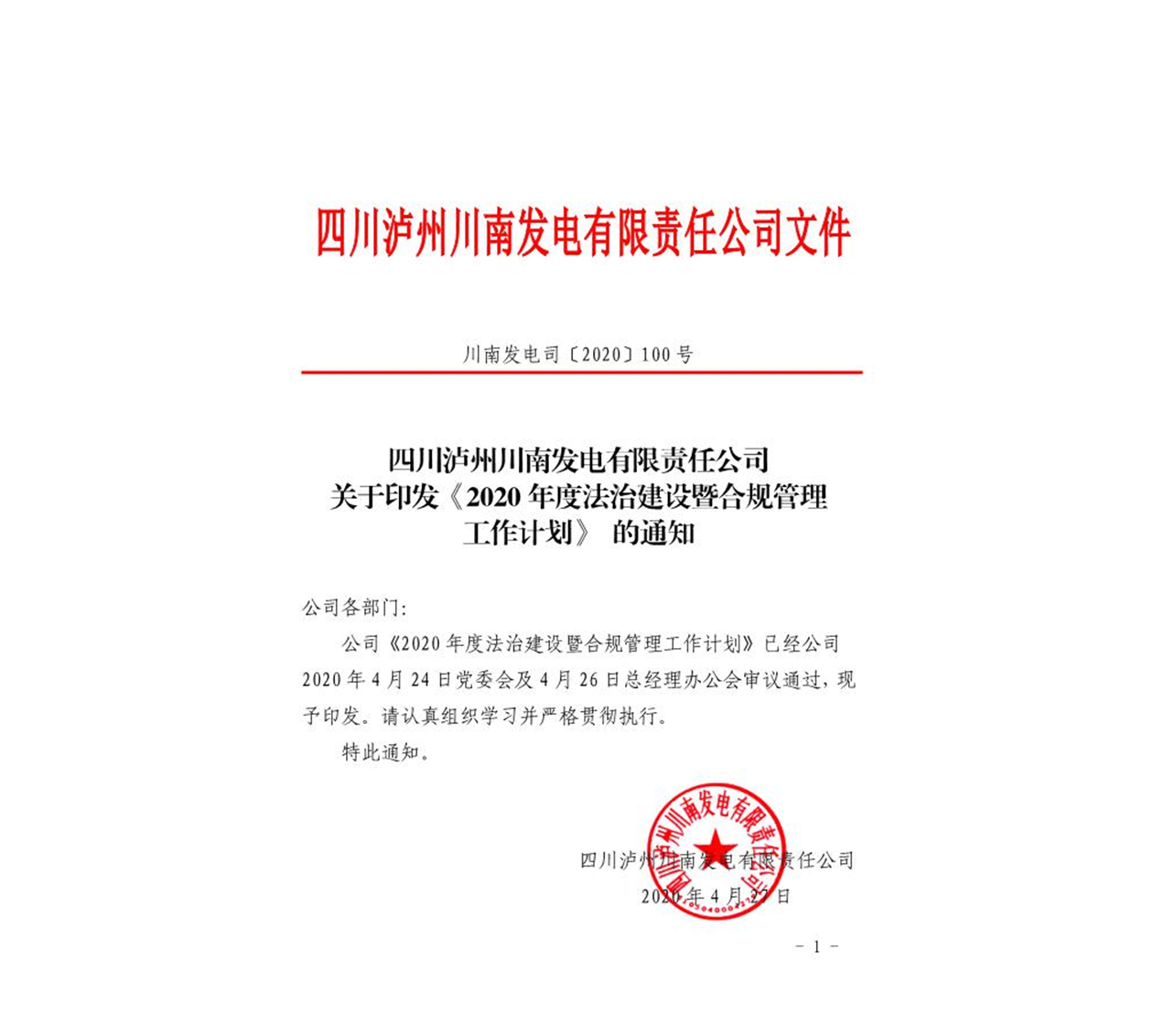 為深入貫徹落實川投集團(tuán)戰(zhàn)略規(guī)劃,進(jìn)一步加強公司法治建設(shè)和合規(guī)管理工作,4月27日,川南發(fā)電印發(fā)了《2020年度法治建設(shè)暨合規(guī)管理工作計劃》,對2020年的法治建設(shè)和合規(guī)管理工作進(jìn)行詳細(xì)安排。