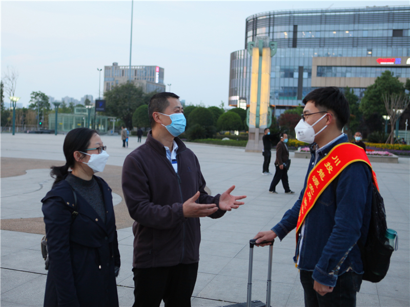 4月25日,川投能源 “最美逆行者”、交大光芒工程突擊隊隊員何啊潭同志圓滿完成在武漢鐵路局的值守任務(wù),帶著勝利和平安凱旋歸來。川投能源黨委副書記、工會主席楊超龍與黨群工作部主任楊鑫以及交大光芒黨總支委員汪志橋一道,手捧鮮花,到成都東站迎接川投能源“最美逆行者”回家。