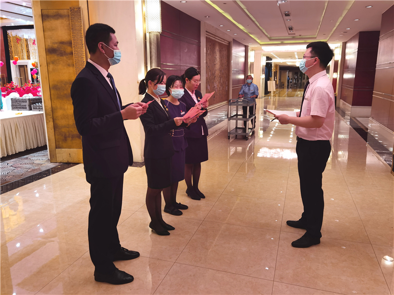 6月6日,川投國際酒店承接多起婚宴等大型宴會(huì)活動(dòng),接待服務(wù)人手較為緊張,公司黨員先鋒隊(duì)積極響應(yīng),組織動(dòng)員了11名黨員參與此次支援工作。