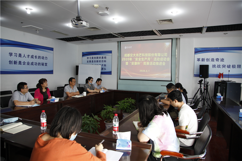 為進一步落實安全生產(chǎn)主體責任,提高安全管理精細化水平,根據(jù)川投能源統(tǒng)一部署,6月1日下午,交大光芒召開2020年 “安全生產(chǎn)月”活動啟動會暨“安康杯”競賽活動推進會,公司黨總支書記、總經(jīng)理、安環(huán)職委會主任劉成輝主持會議,公司經(jīng)營班子、工會委員、安全管理人員等11人出席會議。