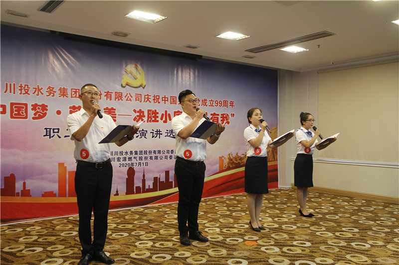 7月1日下午,川投水務(wù)黨委在宏源公司11樓大會(huì)議舉行了“中國(guó)夢(mèng)?勞動(dòng)美——決勝小康奮斗有我”川投水務(wù)集團(tuán)職工誦讀和演講選拔賽。臺(tái)上選手飽含深情,激情飛揚(yáng),臺(tái)下觀眾掌聲雷動(dòng),意猶未盡。經(jīng)過(guò)激烈地角逐,川投水務(wù)榮縣氣司參賽選手龔婷筠榮獲演講比賽一等獎(jiǎng),川投水務(wù)萬(wàn)源水司、宏源氣司、射洪水司分別榮獲誦讀比賽一、二、三等獎(jiǎng)。