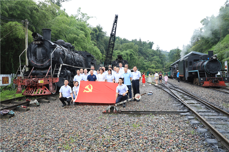 學(xué)習(xí)交流組成員們登上“川投先鋒號(hào)”車廂中,一邊跟隨蒸汽小火車穿越時(shí)空,一邊聆聽嘉陽煤礦80多年的發(fā)展歷程,了解芭石鐵路建成的艱辛,感受旅游轉(zhuǎn)型帶來的生機(jī);來到芭蕉溝的東方紅廣場和毛澤東思想大舞臺(tái),找尋年代記憶,回憶這里曾經(jīng)進(jìn)行文化演出、體育活動(dòng)、群眾集會(huì)的熱鬧場面;在影劇院莊嚴(yán)重溫入黨誓詞,初心不改,繼續(xù)前行;參觀博物館了解嘉陽的抗戰(zhàn)文化、紅色文化、礦山文化;深入全國唯一真實(shí)體驗(yàn)觀光礦井黃村井,讓黨員同志們感受當(dāng)年煤礦工人的艱辛,感悟礦工的燃燒精神;瞻仰馬廟烈士紀(jì)念碑,獻(xiàn)花注目,緬懷英烈,更加珍惜當(dāng)下偉大的時(shí)代和安居樂業(yè)的生活;碧波逐浪桫欏湖,聆聽抗戰(zhàn)運(yùn)煤的歷史,飽覽原生態(tài)凈地……