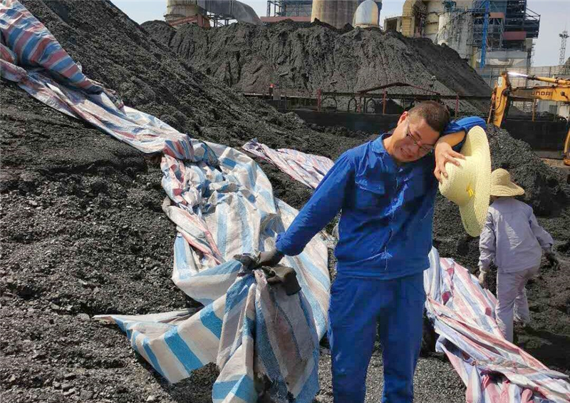 “別拍我了,我的臉又黑又花的。”一位燃煤質(zhì)檢部的員工一邊說,一邊用手拂過額頭上的汗水,臉更花了。