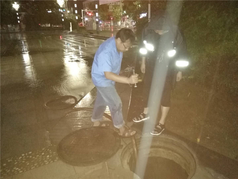 一天的搶險(xiǎn)工作剛剛結(jié)束,鄧俊又接到了黃鹿第二水廠到繼光水廠段供水出現(xiàn)異常的消息。他拖著疲憊的身體,立即投入到排查黃鹿第二水廠到繼光水廠主管沿線有無漏點(diǎn)的工作當(dāng)中。經(jīng)過幾個(gè)小時(shí)的沿線巡查,終于在凌晨4點(diǎn)左右發(fā)現(xiàn)七里壩主管有漏損點(diǎn),他立即聯(lián)系工程技術(shù)部開挖漏水點(diǎn),并通知供水部向防汛領(lǐng)導(dǎo)小組報(bào)告。