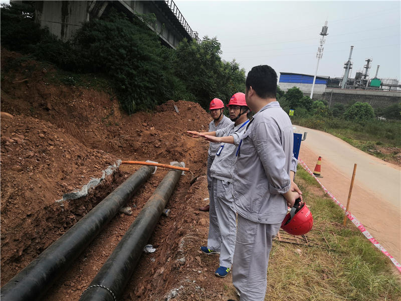 由于達(dá)州新機(jī)場(chǎng)大道建設(shè)及甕福磷石膏項(xiàng)目建設(shè),需要對(duì)公司廠外取水管線(xiàn)甕福鐵路橋下及甕福磷石膏項(xiàng)目管段進(jìn)行遷改,為保障廠內(nèi)生產(chǎn)取水安全,落實(shí)安全責(zé)任,9月1日下午,川投氣電公司黨委書(shū)記、董事長(zhǎng)姚欣帶隊(duì)實(shí)地查看廠外取水管線(xiàn)遷改工程實(shí)況。