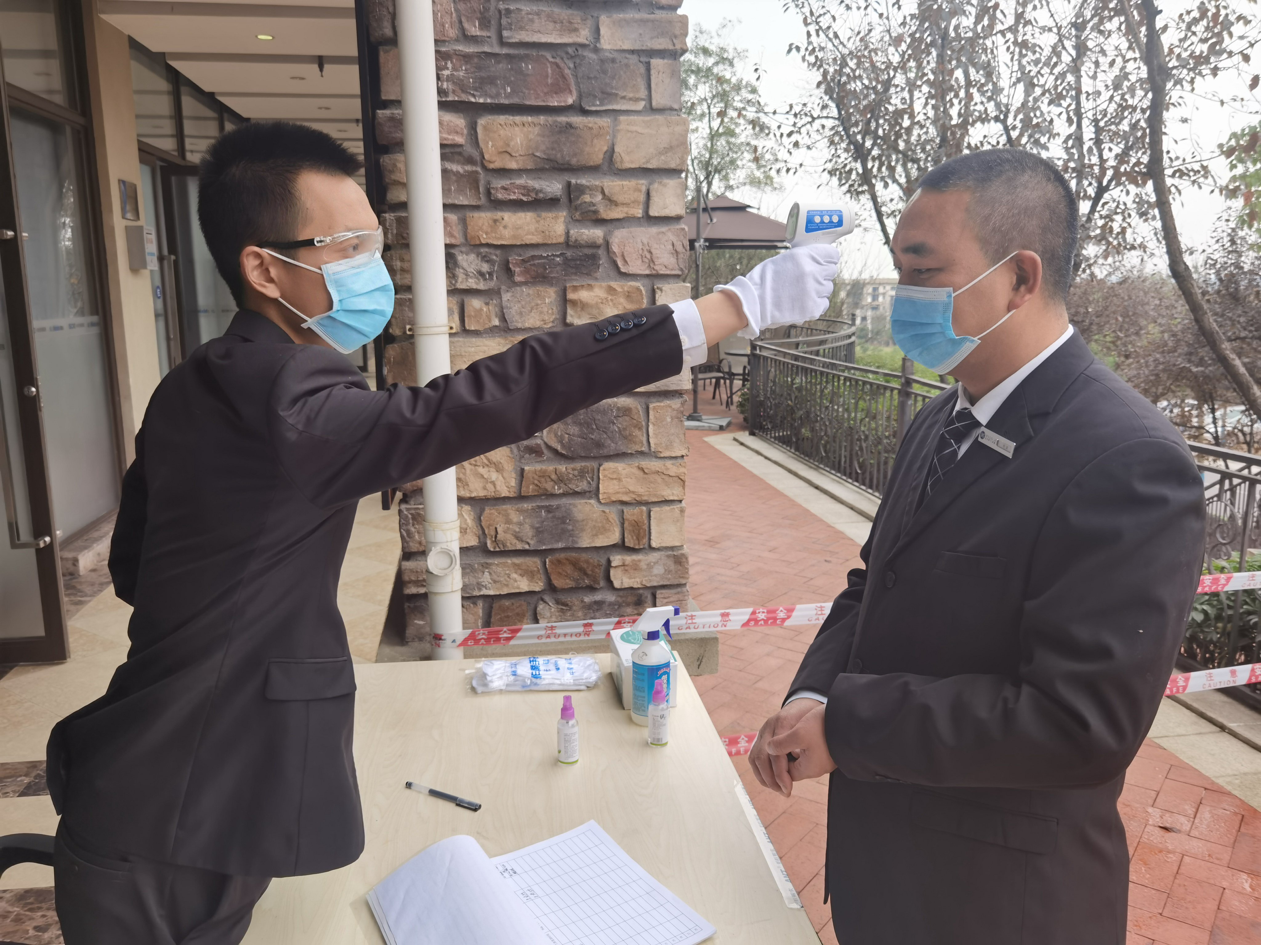 本次演練主要模擬上班時(shí)間對(duì)公司員工進(jìn)行體溫檢測(cè),發(fā)現(xiàn)一名疑似發(fā)熱員工后,立即按照應(yīng)急處置預(yù)案要求向疫情防控工作領(lǐng)導(dǎo)小組報(bào)告。工作領(lǐng)導(dǎo)小組組長(zhǎng)立即安排相關(guān)人員到達(dá)現(xiàn)場(chǎng)處置,封鎖辦公區(qū)域,維持辦公場(chǎng)所秩序,并對(duì)現(xiàn)場(chǎng)進(jìn)行消殺。同時(shí)將該名疑似發(fā)熱員工帶至隔離室進(jìn)行登記,并撥打120向疾控中心等相關(guān)部門通報(bào)。