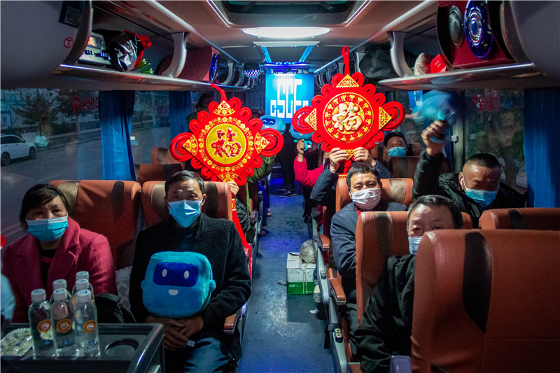 首先,項(xiàng)目防疫組對大巴里外進(jìn)行了全面的消殺,確保乘車環(huán)境的安全,工友們排隊(duì)進(jìn)行體溫檢測后依次登車;其次,強(qiáng)化節(jié)日期間安全警示教育,項(xiàng)目安全總監(jiān)叮囑返鄉(xiāng)路上和春節(jié)期間的安全注意事項(xiàng)。最后,為返鄉(xiāng)工友送上慰問品,預(yù)祝大家新春快樂。