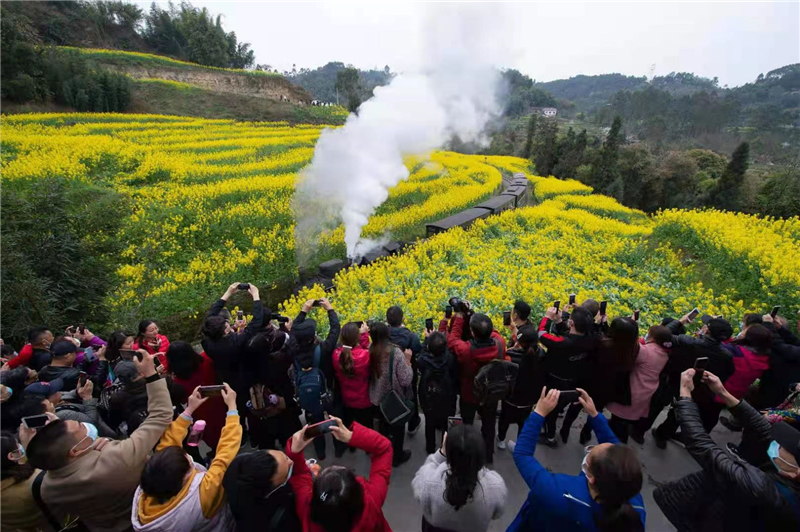 油菜花兒漫山開,蒸汽火車從中來。作為景區(qū)的金字招牌,“花季之旅”吸引著眾多省內外游客蜂擁而至,競相乘坐開往春天的小火車穿越花海。正處于建設沖刺期的川投峨旅為有效緩解往年一票難求、一座難求的現象,打破景區(qū)道路以及小火車運力瓶頸,開展了一系列卓有成效的工作:新開通的塘芭路、菜芭路快速旅游通道正式打通了景區(qū)交通大動脈,游客自駕更加便捷,芭蕉溝核心區(qū)引流效果明顯;新亮相的侏羅紀探險谷、炫彩熱氣球觀光項目體驗獨特,感官刺激,驚叫連連;新開業(yè)的嘉陽禮物文創(chuàng)基地、蘇聯(lián)專家樓酒店獨具特色,進一步豐富了景區(qū)業(yè)態(tài);新推出的夜間鐺鐺車、夜游黃村井、影劇院點唱充分滿足游客游玩體驗需求,備受好評。