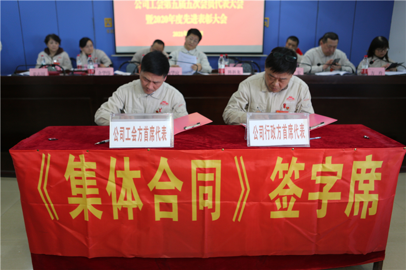 3月4日下午和3月5日上午,各分工會(代表團)分別召開分工會職工代表、會員代表會議,審議職代會、會員代表大會報告并分別提出了審議意見。3月5日15:00,在職代會、會員代表大會復會上,公司黨委副書記、總經(jīng)理陳新龍宣布了各分工會對大會議案審議結(jié)果的報告;隨后,公司舉行了雙廉責任書、安全責任書、各類集體合同的簽字儀式,大會還對獲得2020年度先進集體和先進個人進行表彰。
