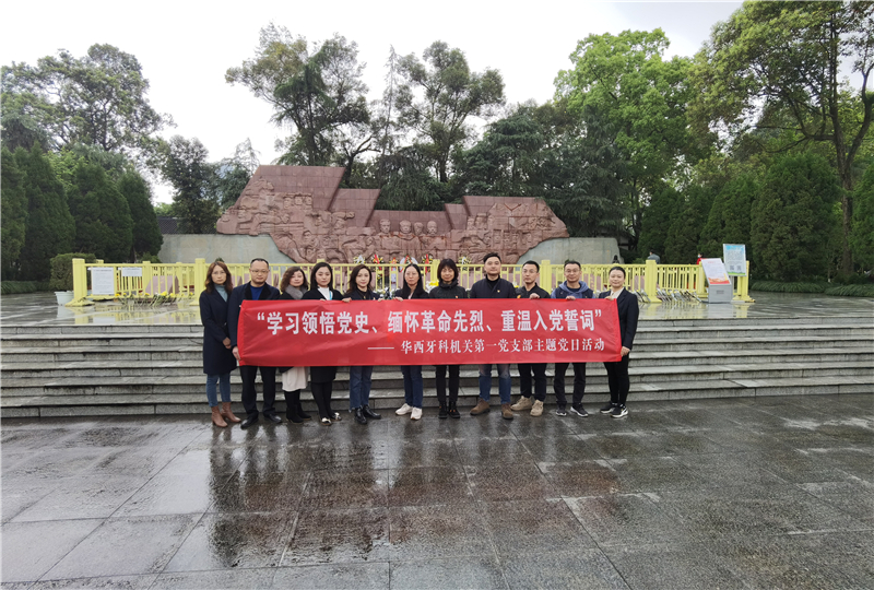 按照《華西牙科黨史學習教育實施方案》的安排部署,3月26日上午,華西牙科機關第一黨支部組織黨員、入黨積極分子、員工代表,前往文化公園十二橋烈士墓開展“學習領悟黨史、緬懷革命先烈、重溫入黨誓詞”主題黨日活動。本次活動旨在深入開展黨史學習教育,進一步增強黨員黨性觀念,傳承“紅色”精神,激發(fā)廣大黨員員工二次創(chuàng)業(yè)熱情。